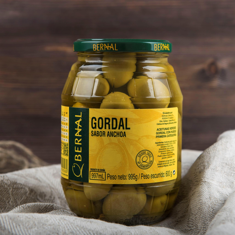 Оливки сорта Гордаль по размеру напоминают небольшую сливу. Их выращивают в Севилье, в Андалусии. Оливки собирают вручную, тщательно отбирают и направляют на консервацию. Оливки Гордаль производят в натуральном и в анчоусном рассоле. Крупные зеленые оливки с плотной, мясистой и ломкой текстурой и с небольшой косточкой. Вкус гармоничный горьковато-соленый, с характерным тонким ароматом, без горечи в послевкусии. Эти оливки украсят самые изысканные блюда и закуски.